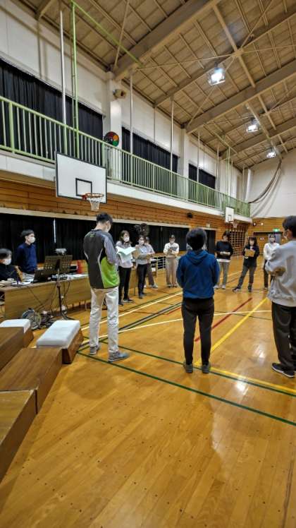 午後は学習発表会委員長のリードで打合せと職員作業をします。よい舞台にしていくため、職員みんなで力を合わせます。