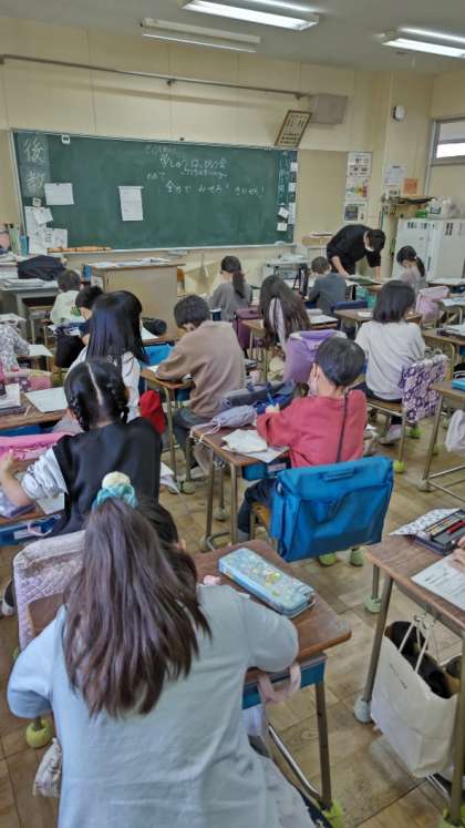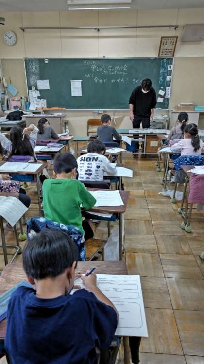 [2年生学活]午後の教室では「学習発表会に向けてがんばること」をワークシートに書いています。めあてを決めてがんばることは大事だね。