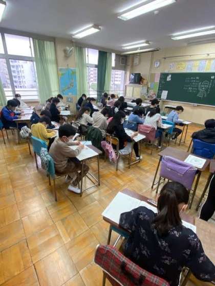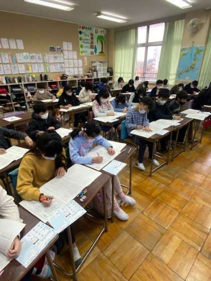 こちらは5年生の教室です。みんな集中して取り組んでいました。