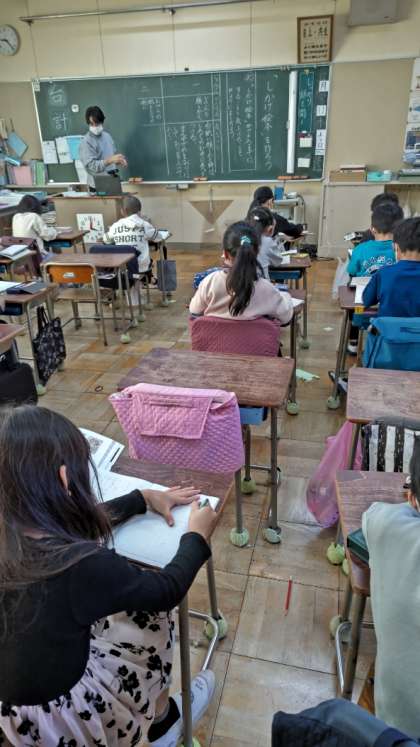 [2年生国語]「しかけ絵本を作ろう」の学習です。説明書の書き方の工夫を学びます。実際に作ってみるようです。楽しそうな学習ですね。
