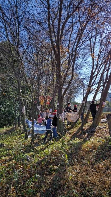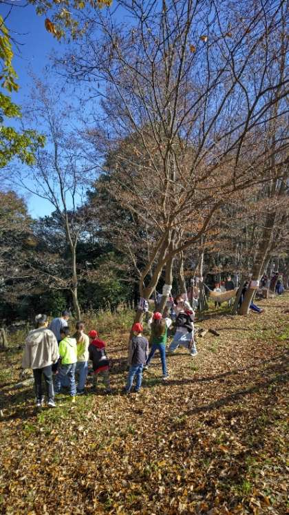 [3年生4年生学校林活動]みんなが楽しみにしていた学校林活動です。いいお天気の中、手作り遊具で思う存分遊びました。
