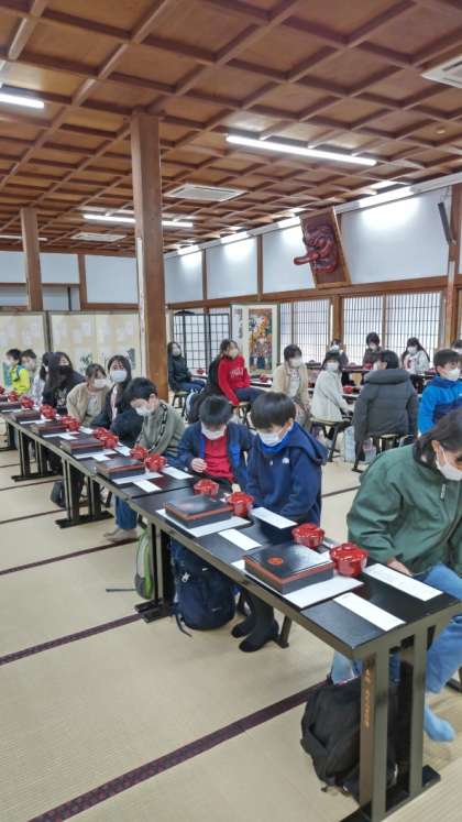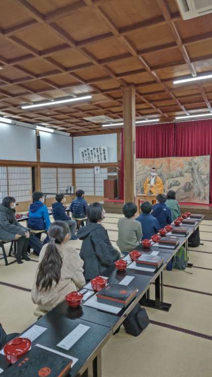 (お話が終わり、別の部屋に行くと、精進料理が用意されていました)