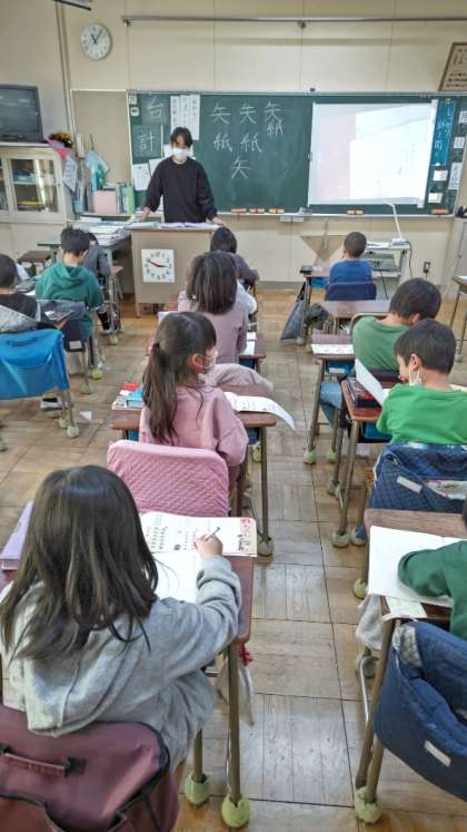 [2年生国語]漢字ドリルを使って、新出漢字の学習をしています。今日は「組」「場」「楽」「牛」を練習します。