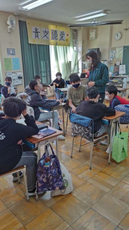 (近くのグループで、そしてクラス全体で話し合っていきます)