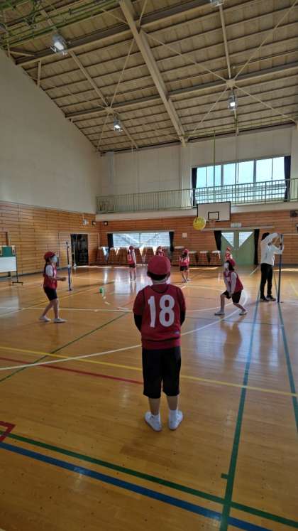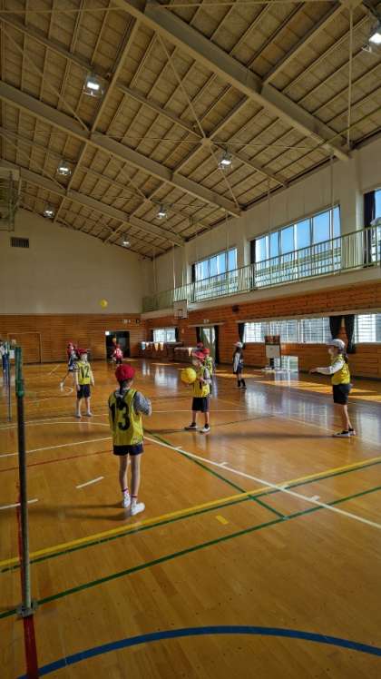 [3年生体育]「ネット型ゲーム」のキャッチバレーボールをしています。子供たちはボールを使ったゲームが大好きです。
