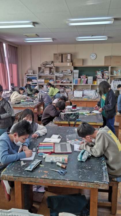 (画用紙を折って、切込みを入れると、パラパラめくれる絵本になります)