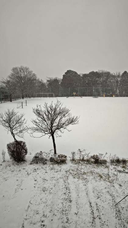 (校庭は真っ白!)