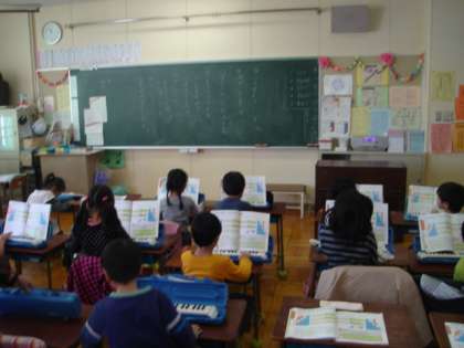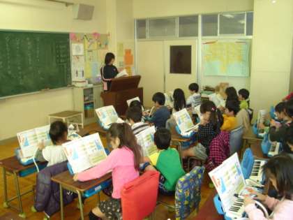 4時間目、1組は音楽の授業です。