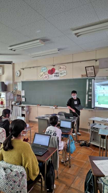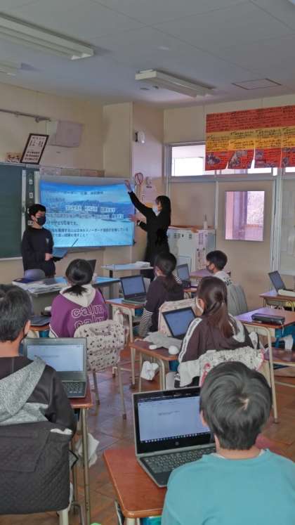 [6年生総合]6の2の「未来に向かって」です。これまで調べてきた職業調べの発表会をしています。