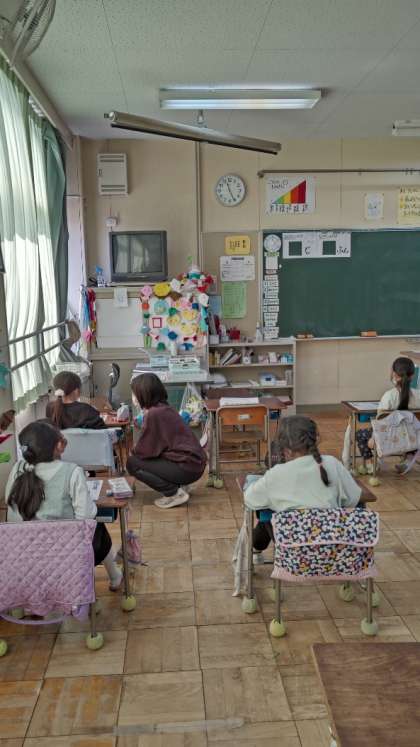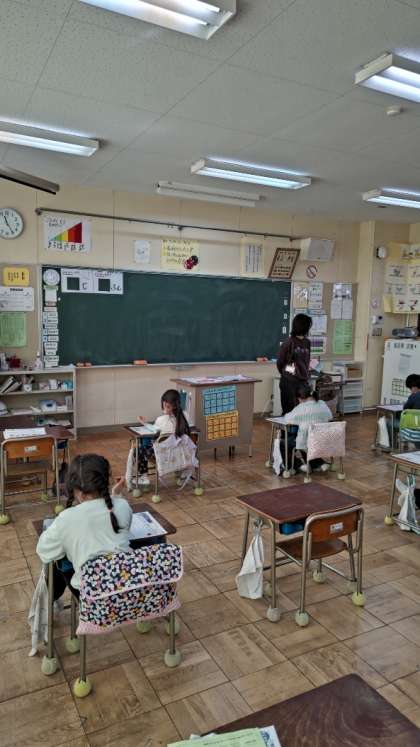 (質問する時は手を挙げます。すぐに先生が来てくれます)