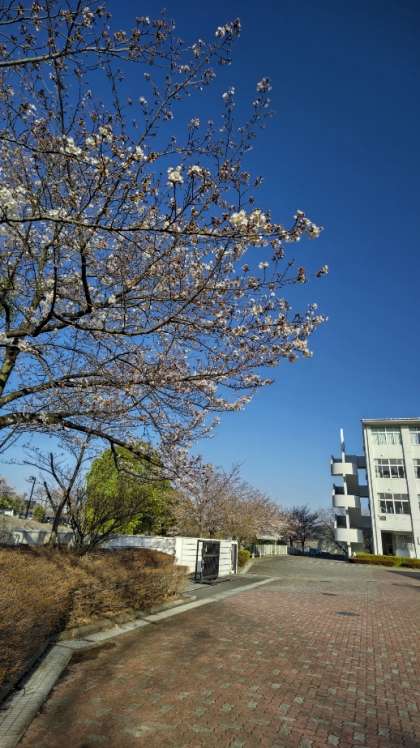 桜がとてもきれいに咲いています。七分咲きといったところでしょうか。いよいよ卒業式前日となりました。明日はもっと開くかな、雨が降らないといいな、と思います。
