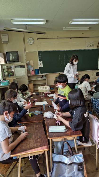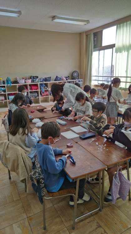 [3年生学活]お花づくりをしています。新1年生を迎えるための準備です。4月になったら1年生の教室をきれいに飾ります。