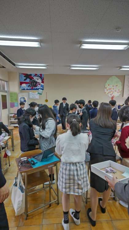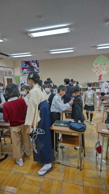 (お花を付けたら、5年生は先に式場へ向かいます)