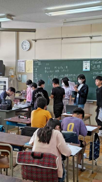 [6年生算数]「対称な図形」の学習です。今は「ぐんぐん」(算数ドリル)をやっています。