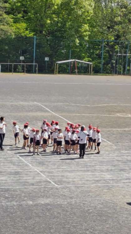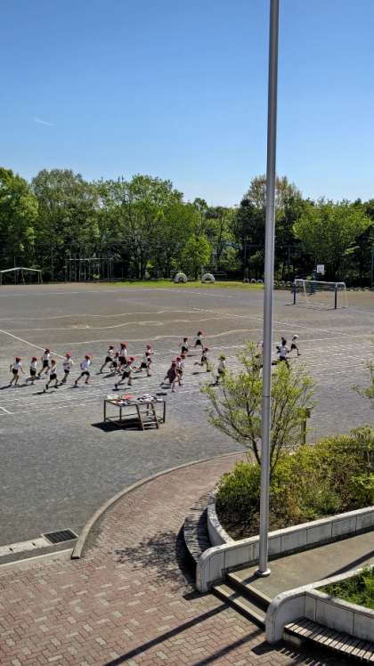 (先生と競走だー!)