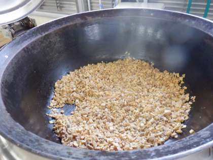 *たけのこごはんは春の食べ物です。大きな回転釜でたけのこの具を煮ています。(写真2枚目)