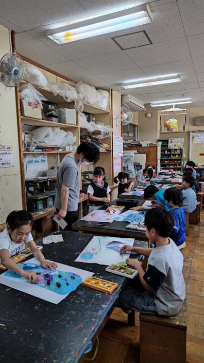 [2年生図工]「ふしぎなたまご」の作品づくりです。平面作品ですが、ちょっと立体的です。