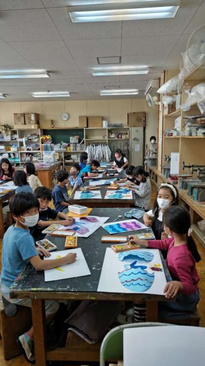 (ふしぎなたまごから生まれたお話を、想像して描きます)