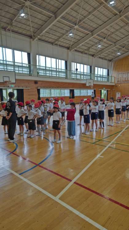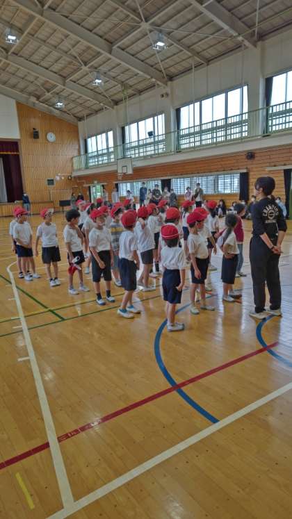 [2年生体育]授業の最後の場面になってしまいました。おうちの方々にご協力いただき、一緒にサーキット運動をしたということでした。