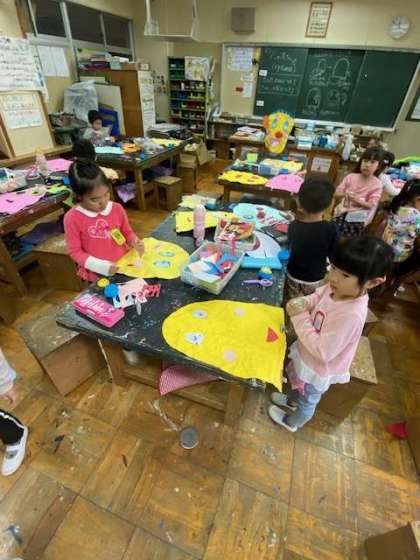 この後、丸めた新聞紙を使ってお鼻をつけていきました。
