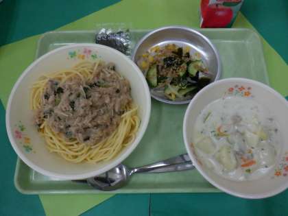 *はち大根おろしスパゲッティは、八王子産の1本3キロ近くある、大きな大根を使用して作りました。大根おろしにして、さっぱりとしたスパゲッティです。大根の葉も使いました。