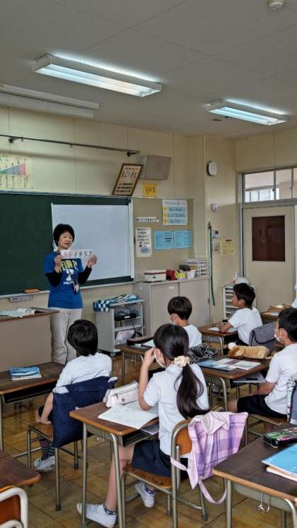 [4年生算数]「一億をこえる数」の学習です。一億をこえる数の書き方や読み方について調べていきます。「179」は下柚木小の児童数、では「561457」は?