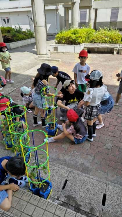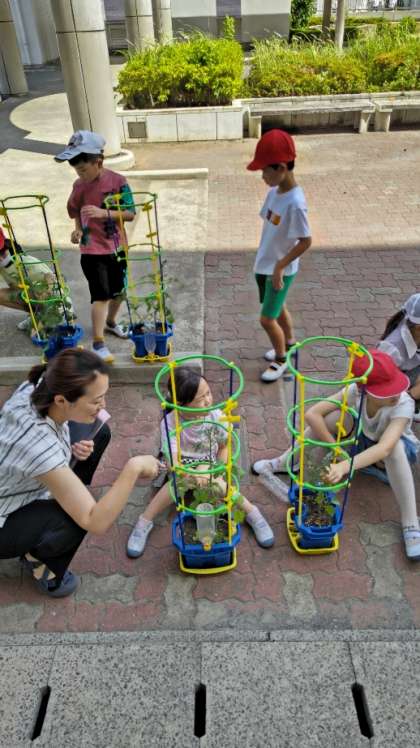 (「校長先生!見て!もう小さいトマトができてるよ!」)