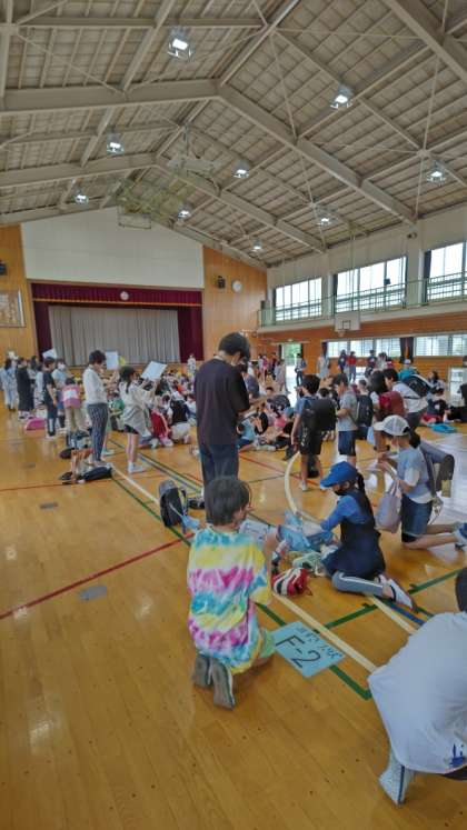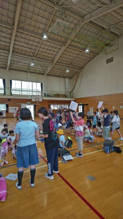 (下柚木小では年に3回、集団下校訓練をしています。この日は大型台風の想定です)