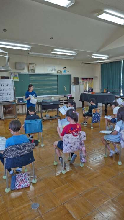 [4年生音楽]今日は歌が中心です。まずは「まきばの朝」です。歌詞の表す様子を思い浮かべながら歌います。