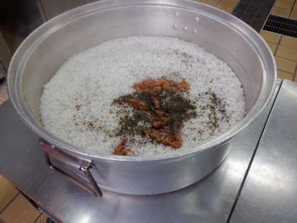 写真2枚目・・うめぼしが入ったごはんが炊けたところ。これから混ぜます。
