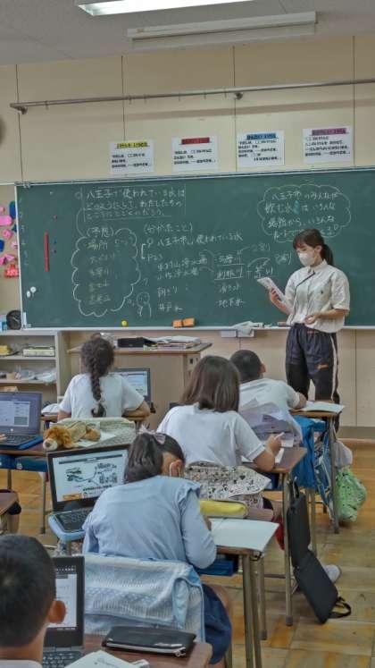 他のクラスを回ってきた後で、また4年生の教室に入ると、たくさんのことが分かったようでした。黒板に調べた成果が書かれていました。