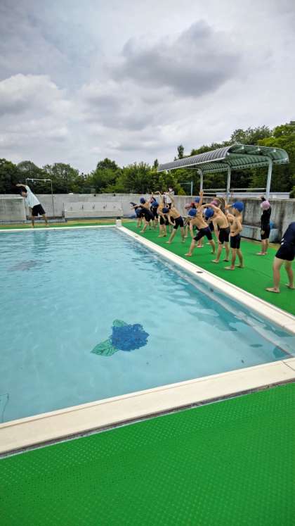 [1年生2年生体育]さあ、いよいよみんなが楽しみにしていたプールの時間がやってきました。朝からそわそわしている子もいましたね。