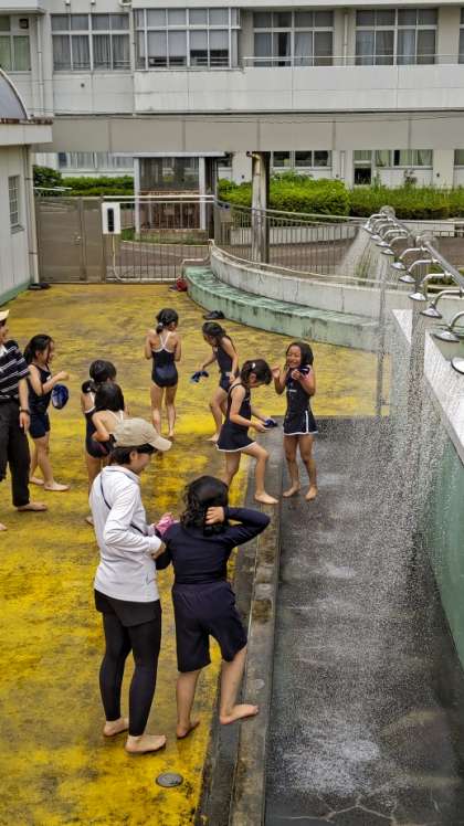 (準備体操をしてからシャワーです)