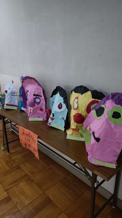 (作品名は「クシャオさん」。くしゃくしゃにした画用紙を使っておもしろい顔を作りました)