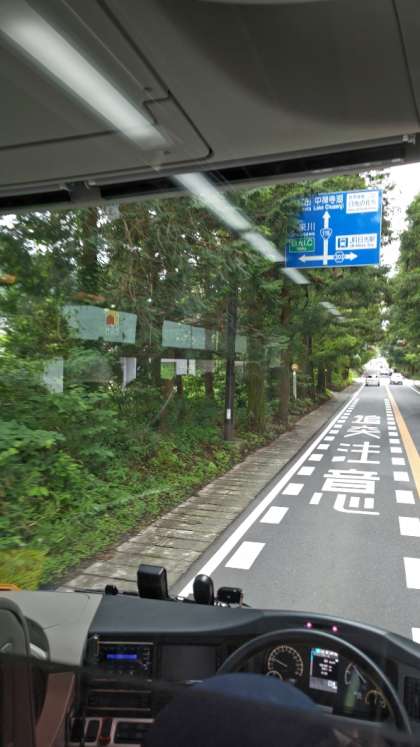 11:45 大谷資料館を出発し、バスはいよいよ日光市内に入りました。日光杉並木がお出迎えです。