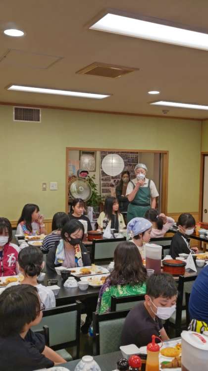 17:50 部屋に入ってから避難訓練をして、温泉にも入りました。さっぱりした後で、お待ちかねの夕食の時間になりました。