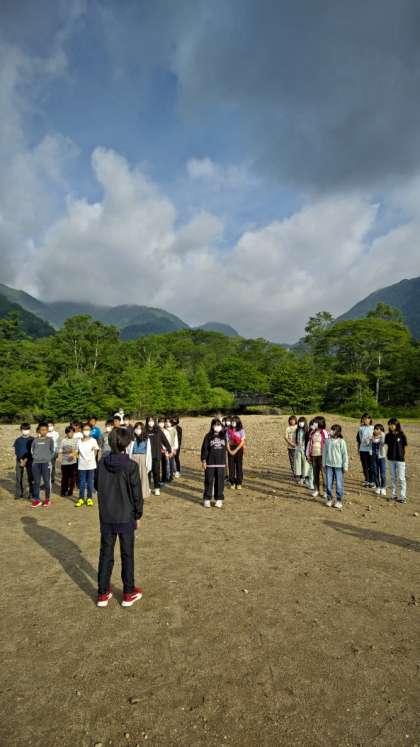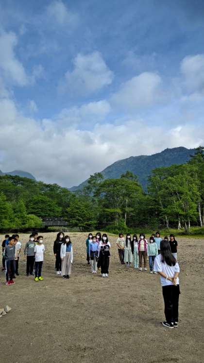 6:30 今朝は湯の湖畔で朝会です。元気よく「おはようございまーす!」