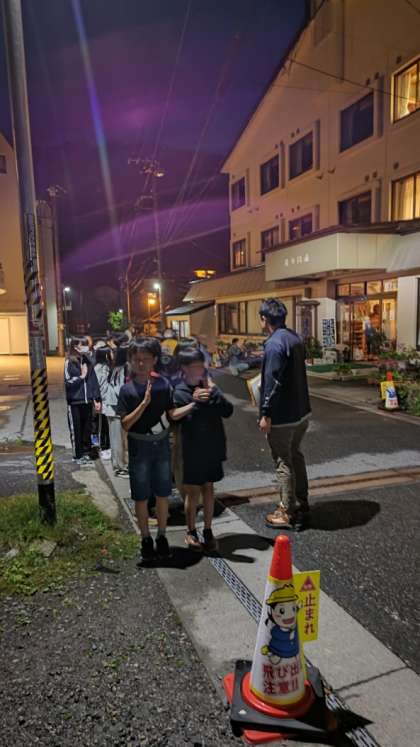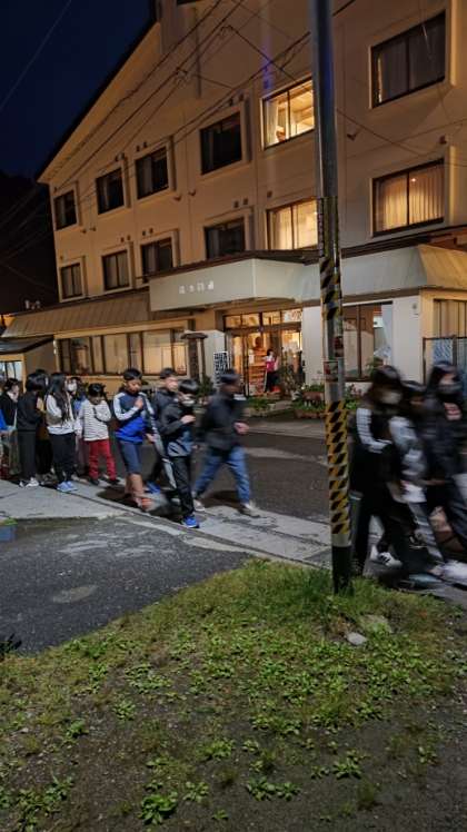19:50 そして外に出ました。みんな神妙な表情ですね。お話の影響かな。お隣さんと手をしっかりつないでます。