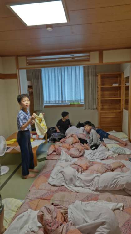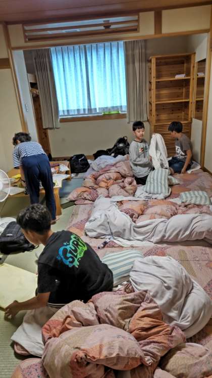 (寝具の片付けからですね)