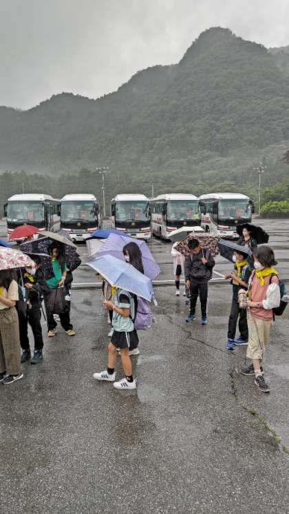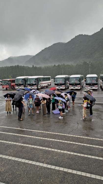 10:05 日光江戸村に着きました。雨が降り続いています。ここでは班行動をしますよ。