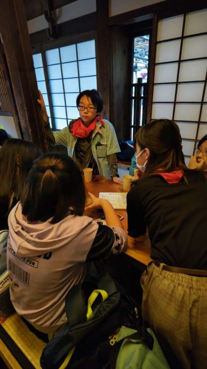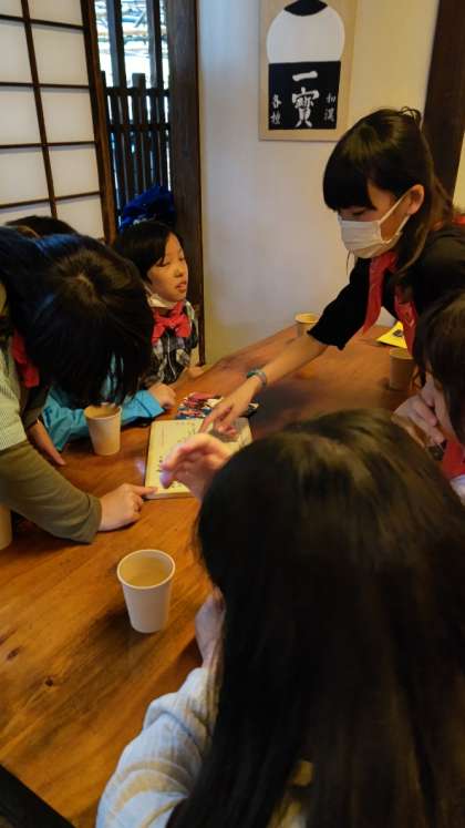 (いろんな班がおそば屋さんにやってきました)