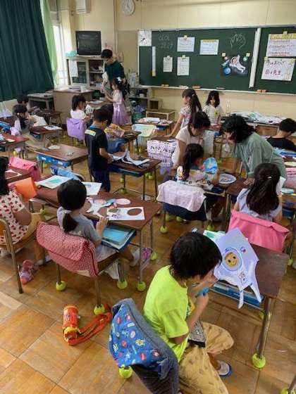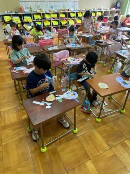 台紙に貼るために、描いた画用紙から切り抜きます。