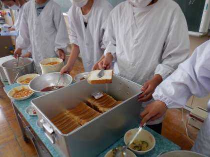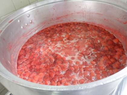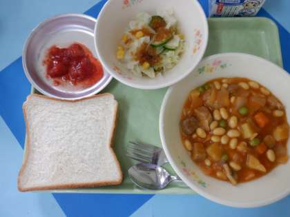 *いちごジャムをコトコト煮て作りました。最近はパンの給食の日も減ったので、子どもたちはパンに大喜びです。