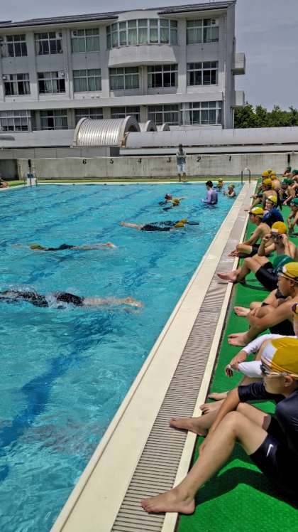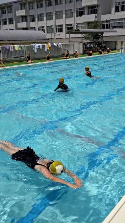 [5年生6年生体育]今日は続けて高学年のプールです。6年生は、このプールに入るのもあとわずかですね。