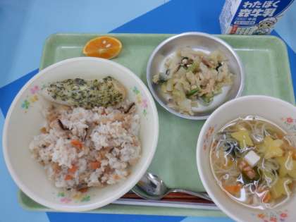 *七夕汁は、かまぼこが星、にんじんが短冊、そうめんが天の川をイメージした汁物です。・・・写真3枚目