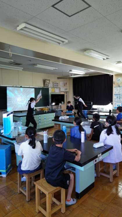[4年生社会]毎年お世話になっている「水道キャラバン」の方々が今年も来てくれました。楽しく「くらしを支える水道」について教えてくれました。