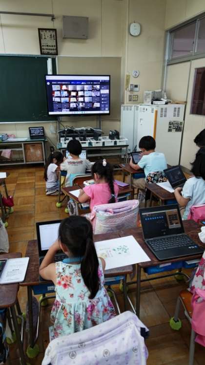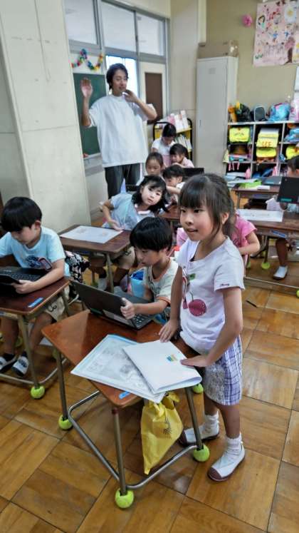 [1年生学活]1年生のパソコン技能が上がっています。ミライシードのオクリンク機能を使って、自分の描いた絵を写真データで提出しています。