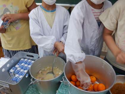 *とても暑い日が続いています。「冷凍みかんが冷たすぎる!」といながら配っていました。