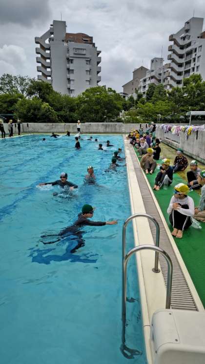 [5年生6年生体育]高学年の「着衣水泳」です。いざという時に、水難事故から身を守る手段を知っておくことは大事です。