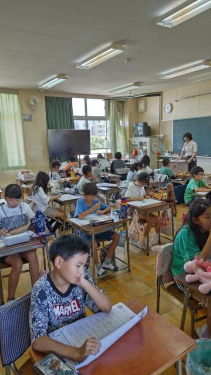 [4年生国語]静かにテストをしています。漢字のテストかな。落ち着いて思い出しながら、がんばってくださいね。